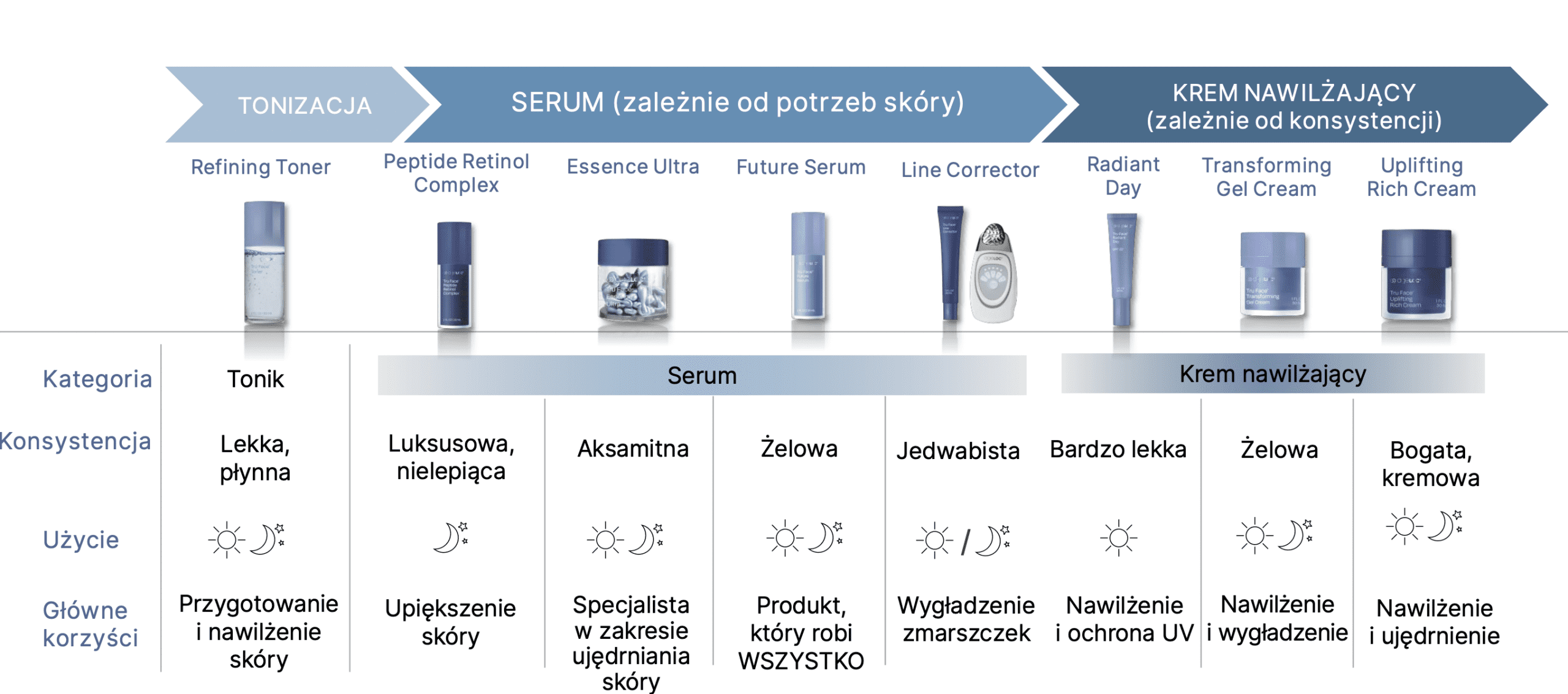 Każdy kosmetyk z linii działa synergicznie, tworząc kompleksową rutynę anti-aging.