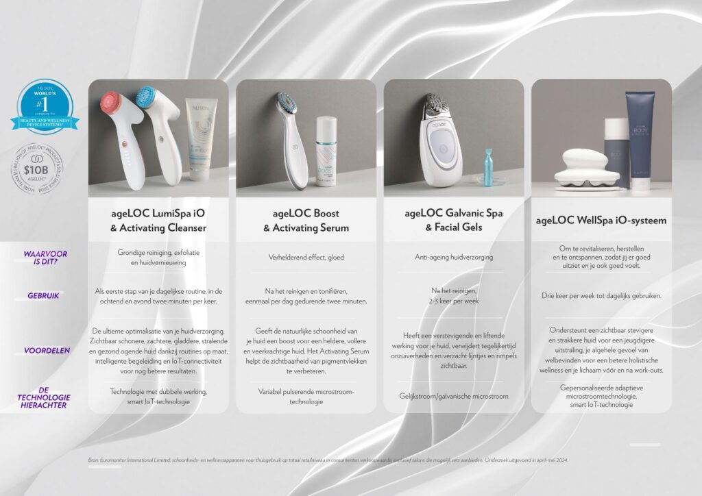 ageLOC LumiSpa iO combineert effectieve huidverzorgingsproducten met een intelligent, uniek apparaat dat gebruikmaakt van gepatenteerde technologie.