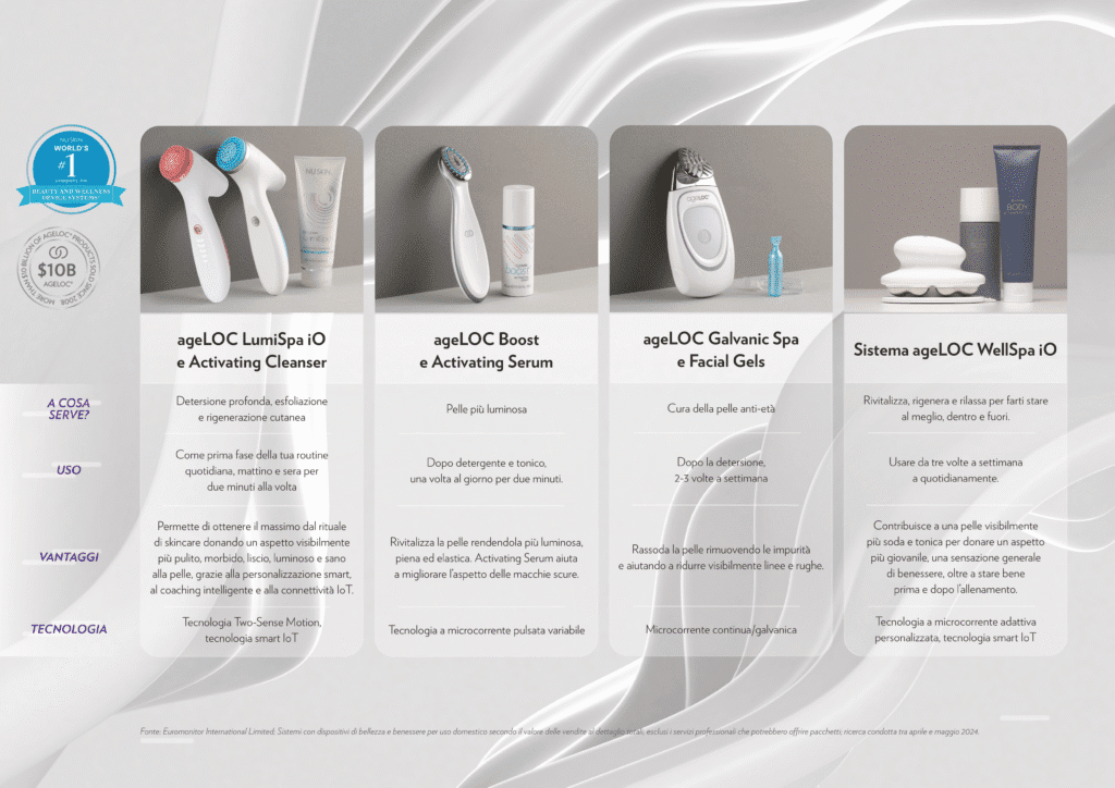 I dispositivi Nu Skin per la cura della pelle a domicilio ti aiutano a creare rituali personalizzati in base alle esigenze della tua pelle e a ottenere i risultati desiderati.