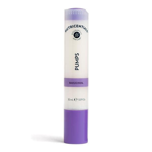 Nutricentials Pumps Bakuchiol z kompleksem bioadaptacyjnych składników roślinnych pomaga zwiększać odporność skóry na negatywne czynniki środowiskowe oraz chronić ją przed skutkami ich oddziaływania. Równocześnie naturalnie pozyskiwany przeciwutleniacz – bakuchiol (roślinna alternatywa dla retinolu) w skoncentrowanej formie pomaga delikatnie wyrównywać koloryt skóry oraz redukować drobne linie i zmarszczki. Kolejnym składnikiem jest wyciąg z jabłek, który zapewnia skórze dodatkowe nawilżenie.