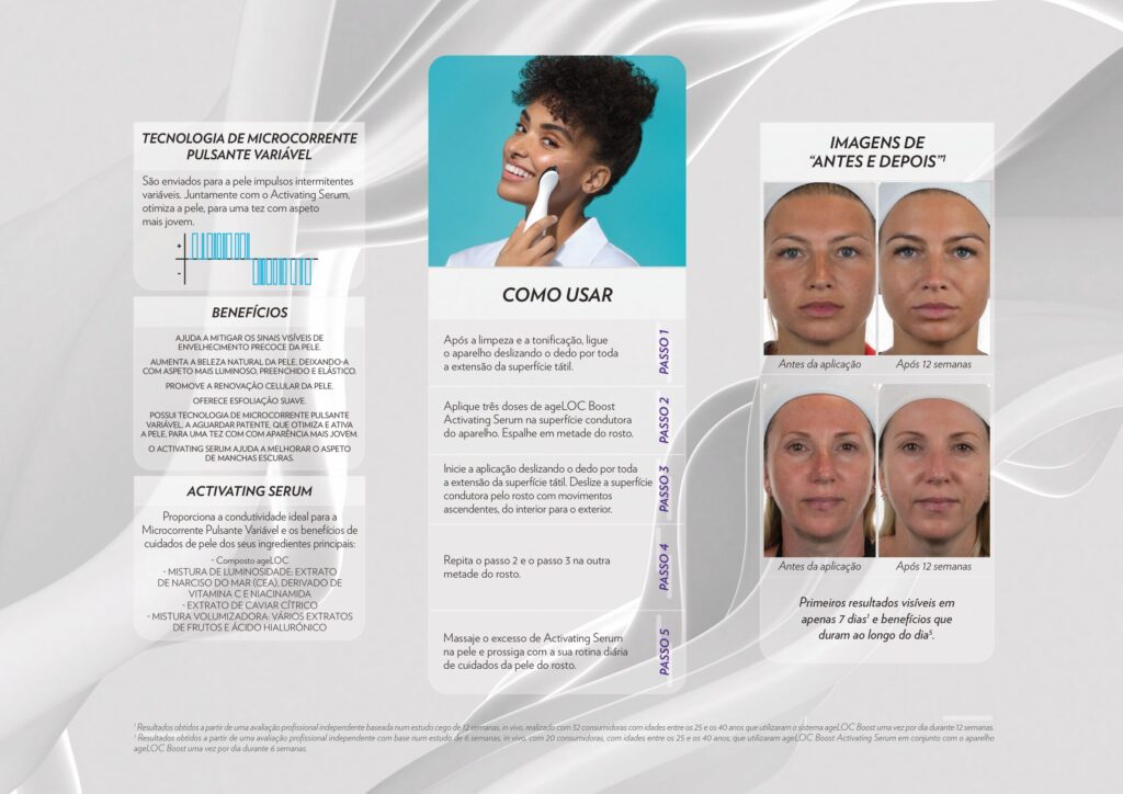 Ainda não acredita? Então conheça o extraordinário ageLOC Boost, o sistema que ilumina e revitaliza a pele — e experimente você mesma!