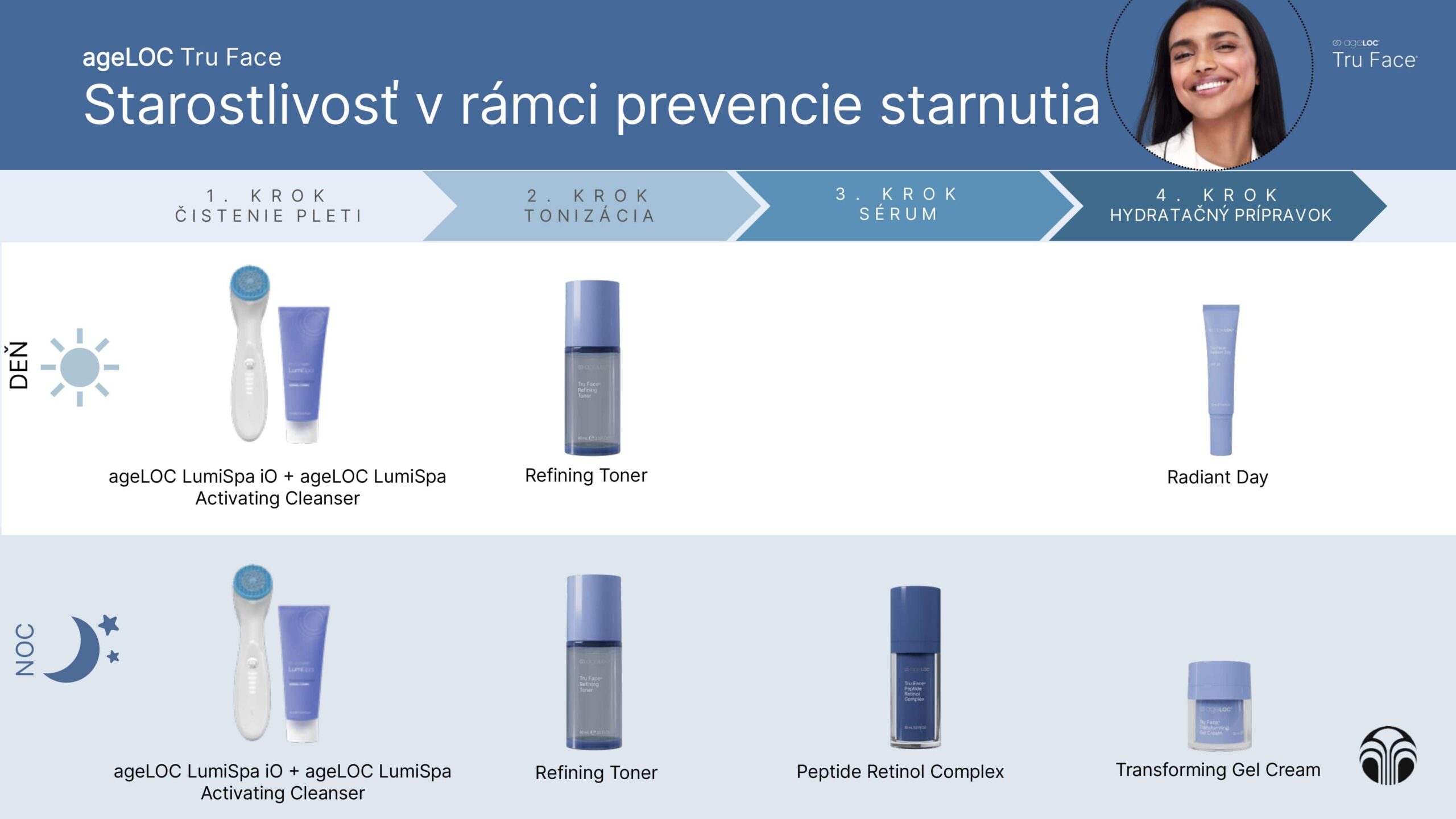 Spoznaj ageLOC Tru Face – prémiovú líniu produktov starostlivosti o pleť, ktoré vďaka pokročilej technológii pomáhajú pokožke vyzerať zdravo, mladistvo a krásne.